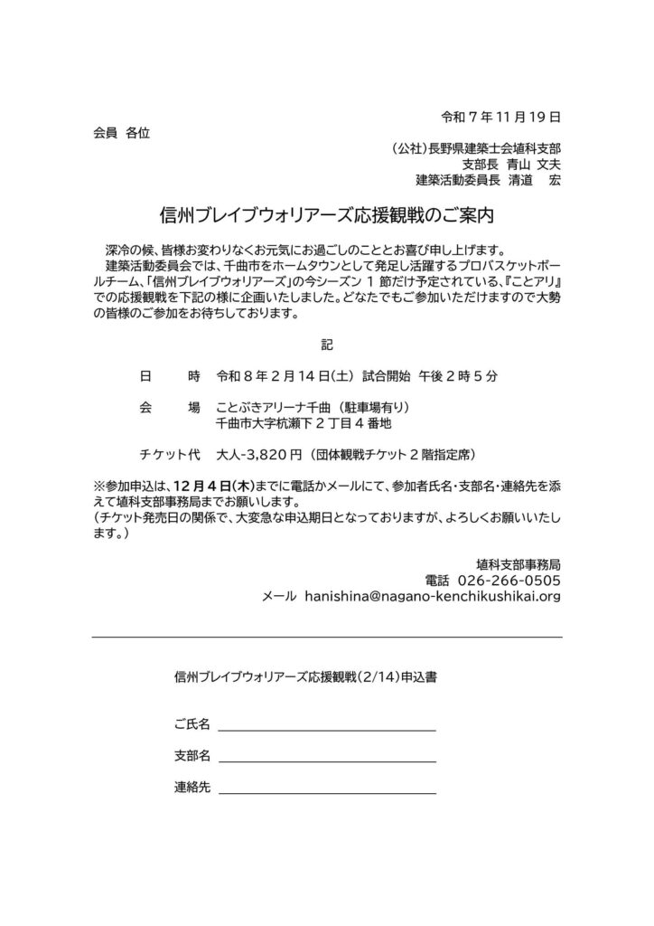 URLをコピーしました! 印刷にはこちらのPDF形式が便利です。お申し込み・お問い合わせは、埴科支部事務局までご連絡ください。 親睦事業 よかったらシェアしてね! URLをコピーしました! ~終了いたしました~ 令和7年度松本市景観シンポジウム参加者募集のお知らせ 第39回・ながの支部ボウリング大会のご案内 この記事を書いた人 堀幸一 関連記事 ながのワインを愉しむ会(ワインセミナー&試飲会) 2026年2月17日 第39回・ながの支部ボウリング大会のご案内 2026年2月17日