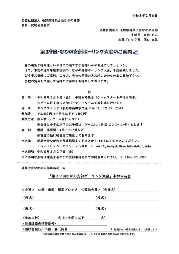 第39回・ながの支部ボウリング大会のご案内