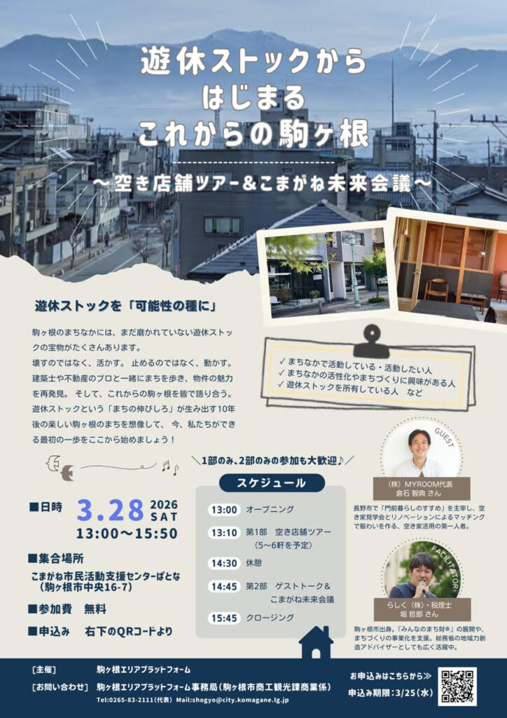 URLをコピーしました! 目次~空き店舗ツアー&こまがね未来会議~ お申し込みはこちらのこちらのGoogleフォームをご利用ください 勉強会 見学会 講演会 よかったらシェアしてね! URLをコピーしました! ~終了いたしました~ ながのワインを愉しむ会(ワインセミナー&試飲会) ~終了いたしました~ 第38回 長野県青年・女性建築士の集い ~地域実践活動発表のご紹介~ この記事を書いた人 堀幸一 関連記事 まちづくり講演会 2026年3月5日 ~終了いたしました~ ながのワインを愉しむ会(ワインセミナー&試飲会) 2026年2月17日 ~終了いたしました~ 令和7年度松本市景観シンポジウム参加者募集のお知らせ 2026年1月4日